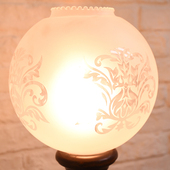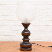 挽物加工された支柱に丸いガラスのシェードが可愛らしい間接照明です。過度な装飾はありませんがクラシカルな存在感光る一品です。