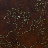 真鍮象嵌で描かれた鳳凰の図案が印象的。艷やかに削り出された木肌や丁寧に彫られた木彫も見ごたえがあります。