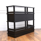 漆塗り本来の味わいを楽しむ為、シンプルなフォルムでつくられた存在感のある佇まいの茶棚。黒漆に浮かぶ美しく繊細且つ大胆な金彩が印象的です。